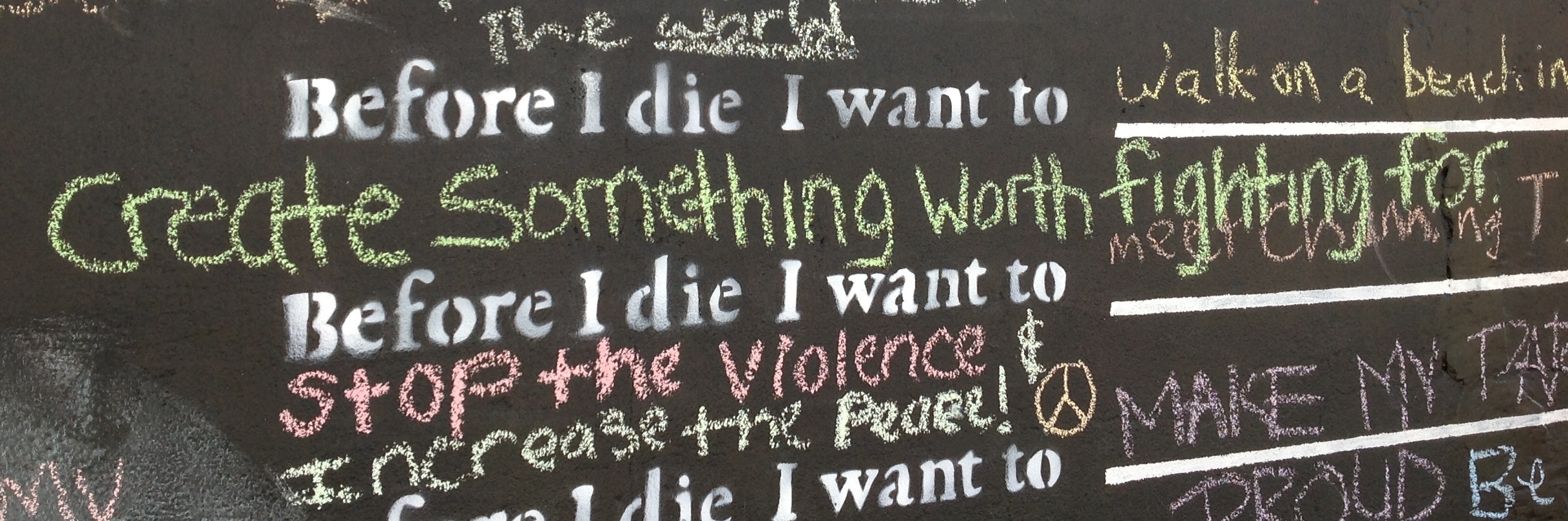 - Watch the Ted talk about the original wall in New Orleans. Candy Chang’s “Before I die I want to…”